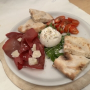 - Burrata Carpaccio Teller14,70 €Ofenfrisches italienisches Brot, Cherrytomaten, Burrata, Bresaola (luftgetr. Rinderschinken), Rucola, Padano