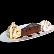 Schokokuchen Mit Sahne5,60 €Saftiger Schokokuchen, Schokososse, Sahne